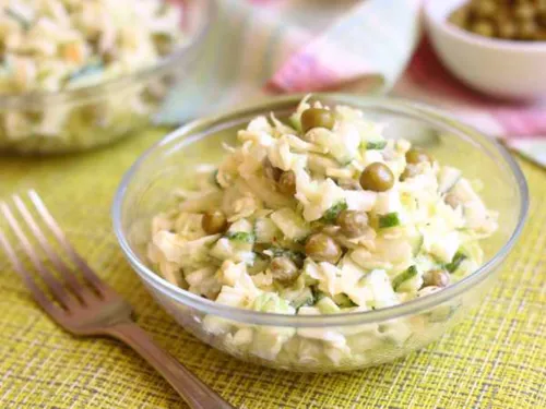 Салат с капустой корнишонами и горошком 100гр
